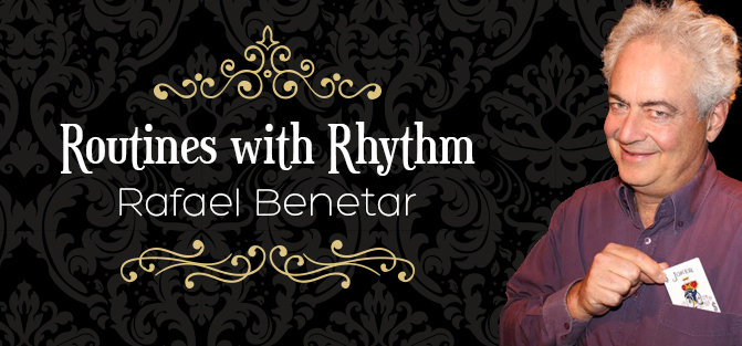 La Cuenta Rítmica de Larry Jennings es una gran técnica para mostrar dos cartas como si fueran cuarto, ocultando otras dos (o más). Rafael Benatar explora algunas posibilidades con la técnica. El efecto que más me gustó es la versión de The Twins de Brother John Hamman con la técnica de Jennings, hace la rutina más fluida y natural. Hay muchas aplicaciones para la Cuenta Rítmica, así que si no la conoces no dudes en adquirir esta videodescarga, pues puede que te abra la mente para algunos efectos que estás trabajando.